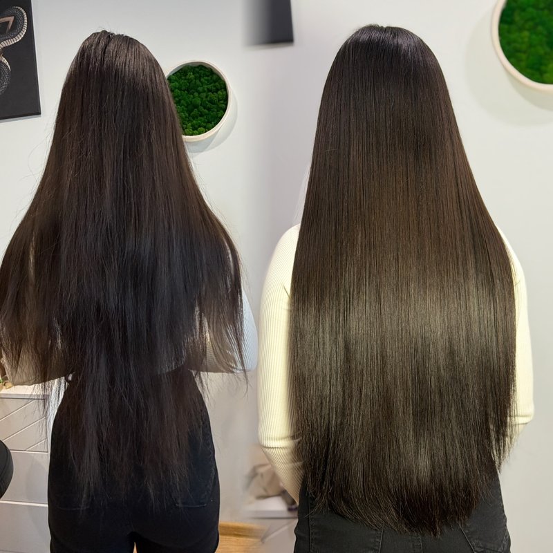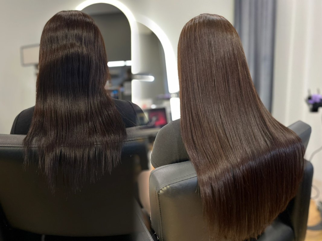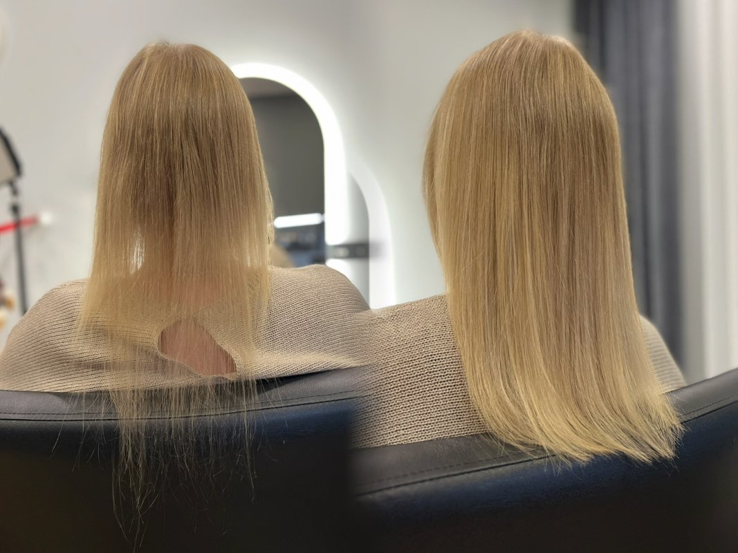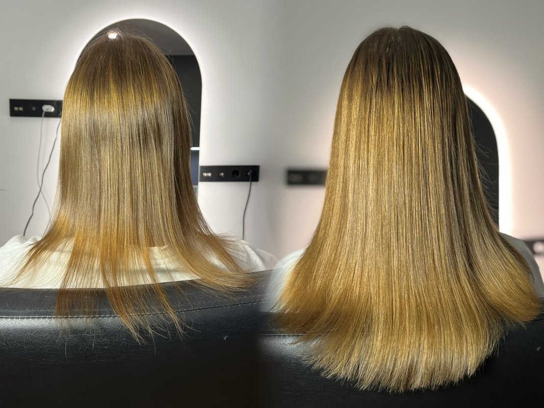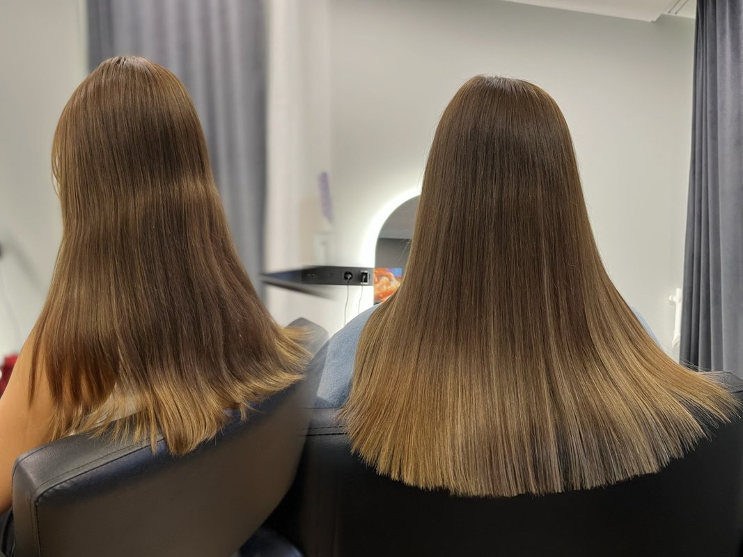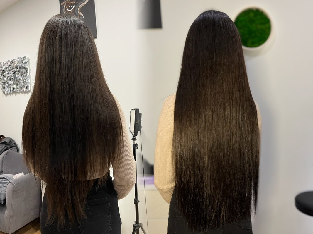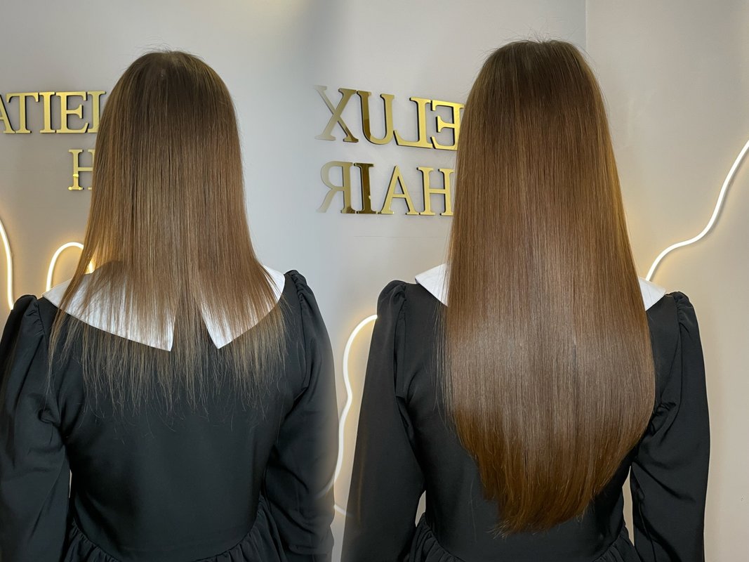 Специалисты выполнили перекапсулирование и коррекцию нарощенных волос работая вдвоем, что позволило завершить процедуру за один день вместо привычных двух. Работу сделали быстро, качественно и очень аккуратно. Особенно порадовала скорость выполнения услуги по сравнению с предыдущим опытом. Атмосфера была дружелюбной, девочки оказались веселыми и общительными, с ними приятно было поболтать во время процедуры, что для меня очень важно.