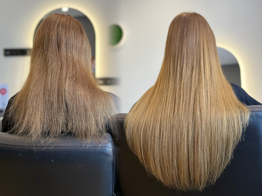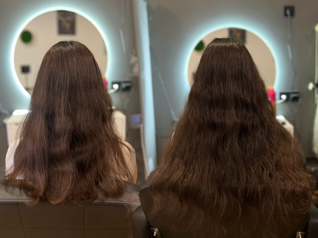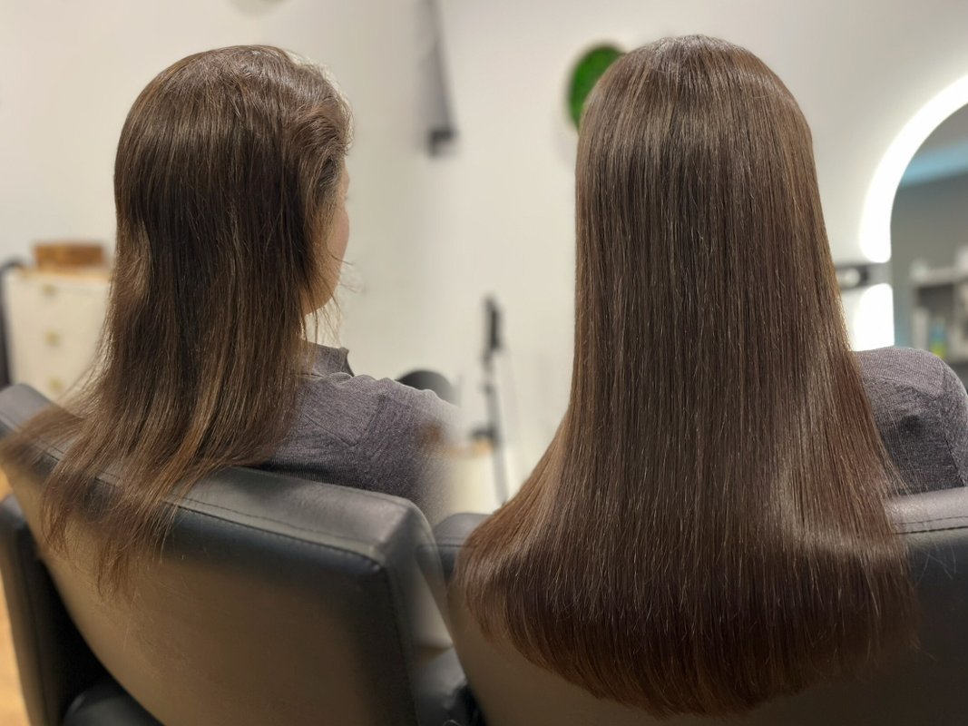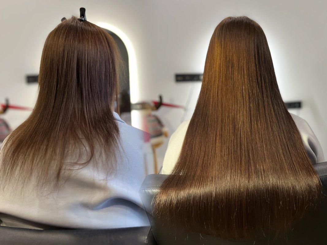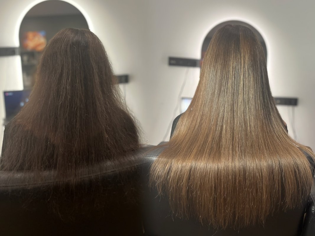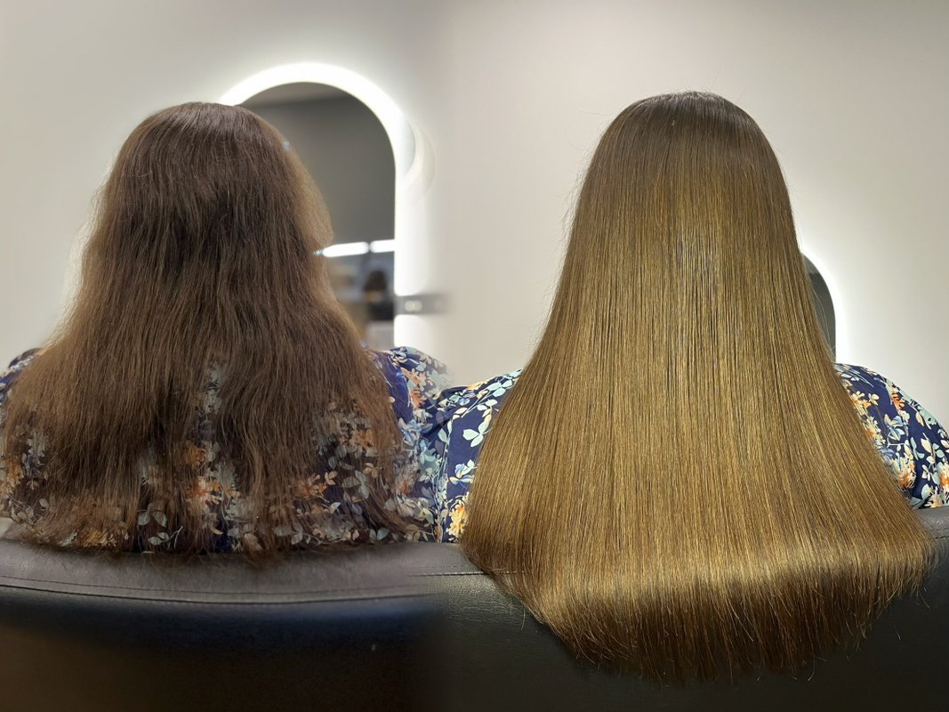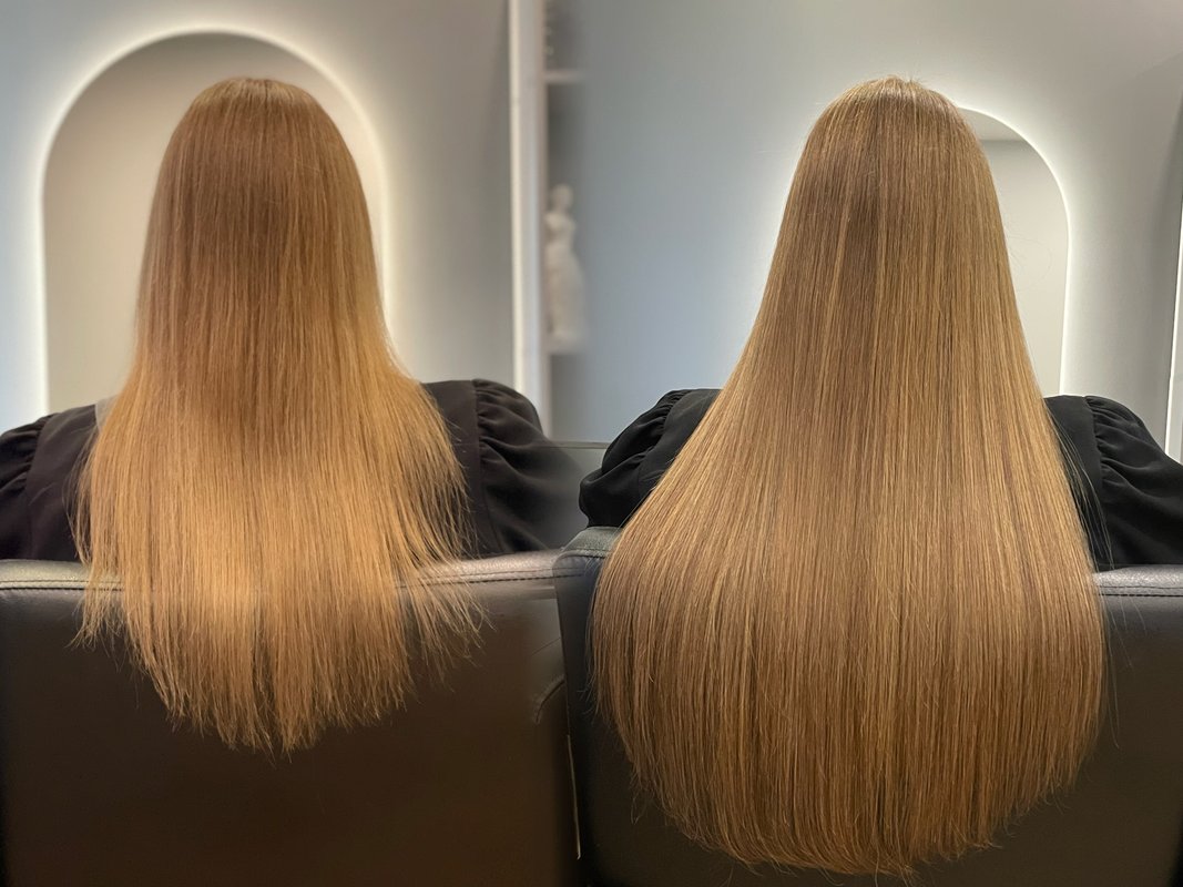 Специалисты выполнили перекапсулирование и коррекцию нарощенных волос работая вдвоем, что позволило завершить процедуру за один день вместо привычных двух. Работу сделали быстро, качественно и очень аккуратно. Особенно порадовала скорость выполнения услуги по сравнению с предыдущим опытом. Атмосфера была дружелюбной, девочки оказались веселыми и общительными, с ними приятно было поболтать во время процедуры, что для меня очень важно.