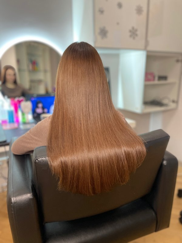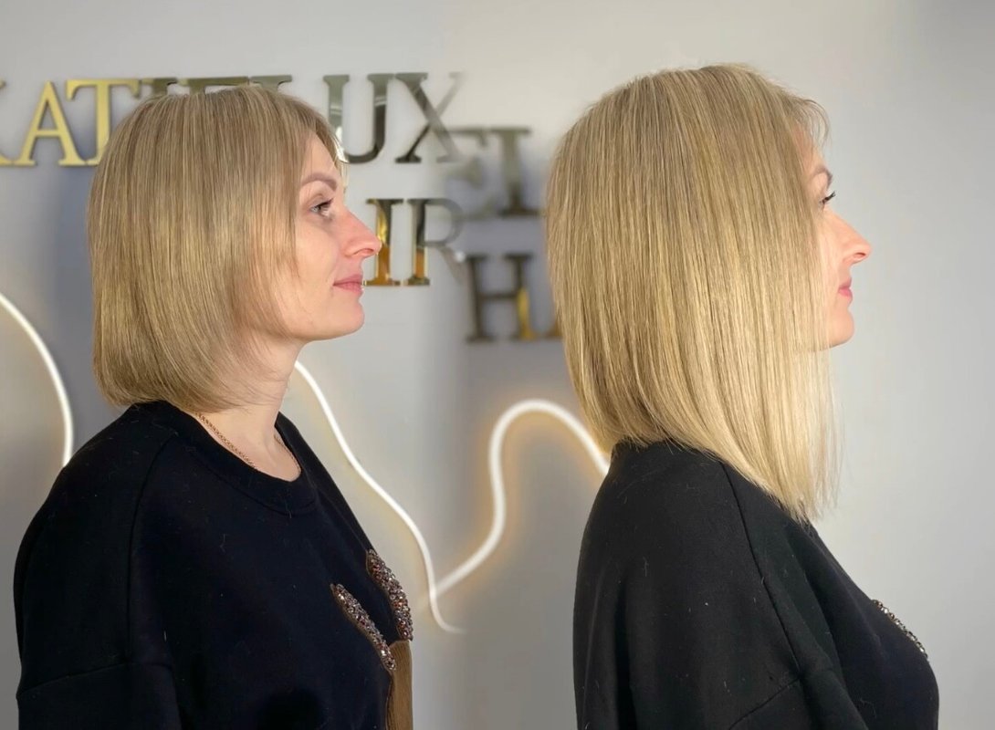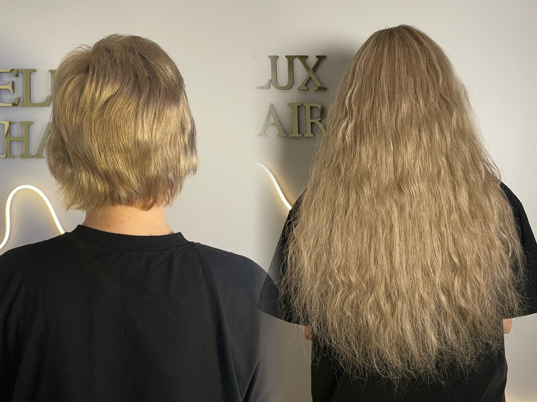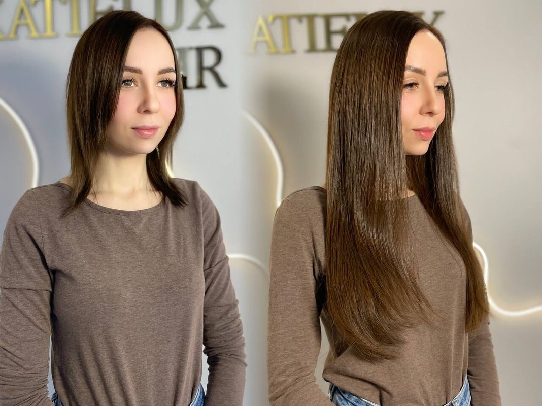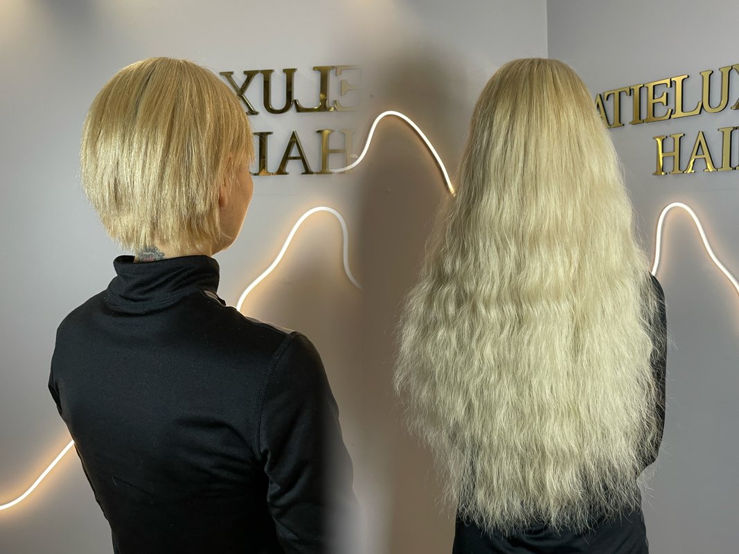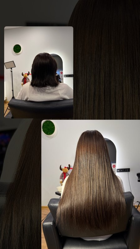 В студии наращивала волосы при сложной длине: верх очень короткий, а низ длинный. Мастер Елена справилась с задачей отлично и создала именно тот образ, который я ожидала. Процедура прошла аккуратно и качественно, результат полностью устроил. Главное для меня было удобство использования, и я осталась довольна: волосы не тянут, не теряются и не доставляют никаких неудобств.