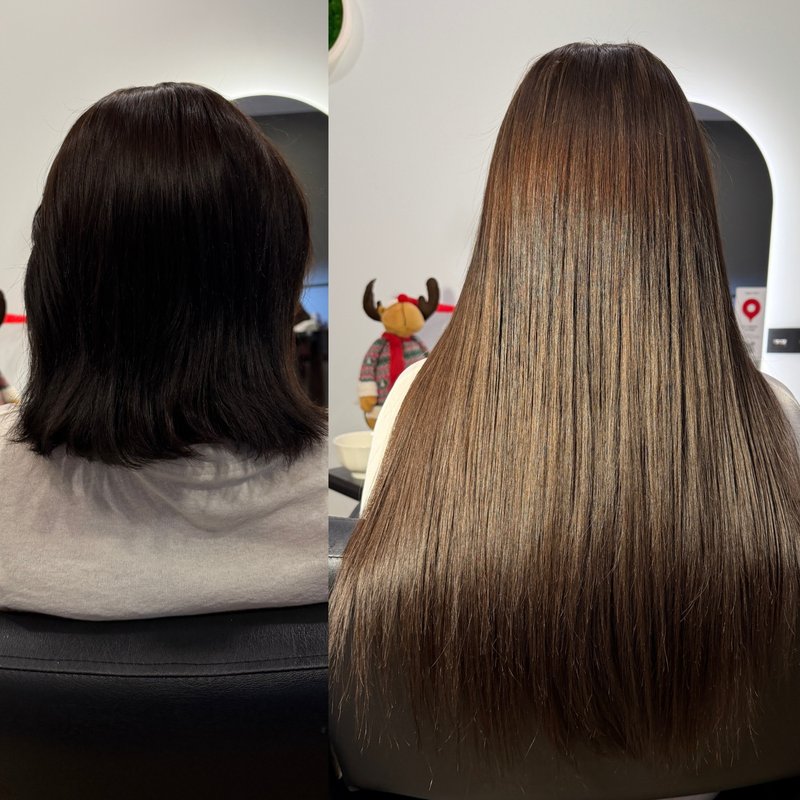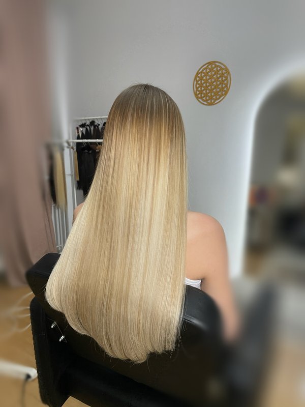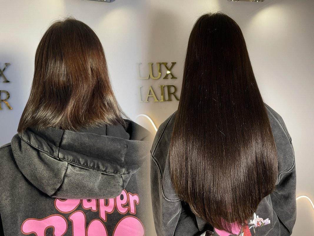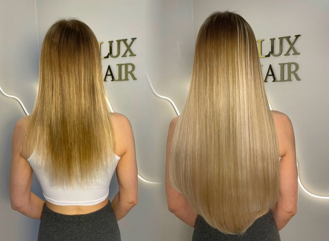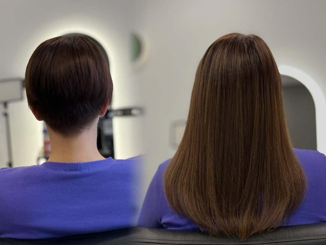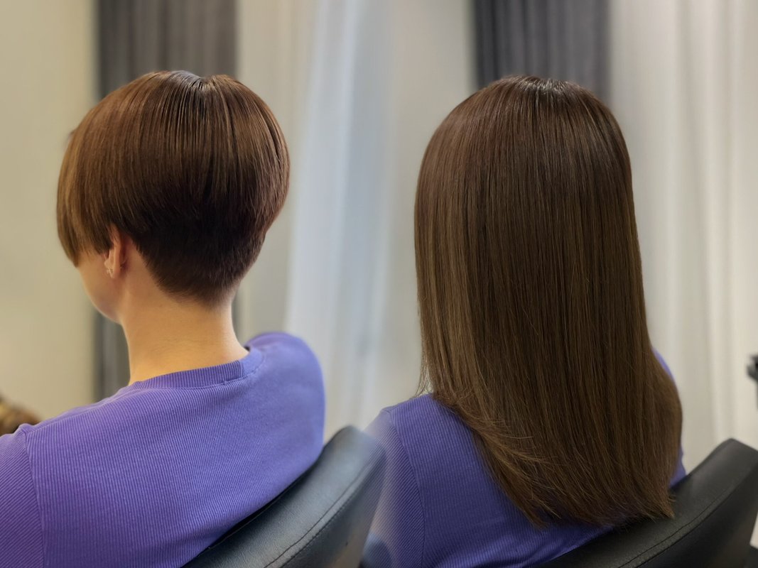 В студии наращивала волосы при сложной длине: верх очень короткий, а низ длинный. Мастер Елена справилась с задачей отлично и создала именно тот образ, который я ожидала. Процедура прошла аккуратно и качественно, результат полностью устроил. Главное для меня было удобство использования, и я осталась довольна: волосы не тянут, не теряются и не доставляют никаких неудобств.