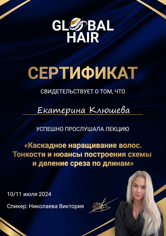Я довольна работой мастера! Уже год регулярно прихожу к ней на наращивание волос. Обычно выбираю около 350 прядей длиной 60 см. Специалист всегда даёт понятные и полезные советы по уходу, которые я строго соблюдаю.