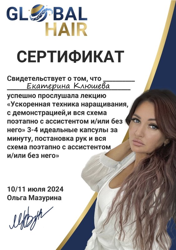Мастер Екатерина делает качественно горячее наращивание волос, поэтому хожу только к ней уже более 10 лет. Мне нравится ее быстрота, пунктуальность и доброжелательность.