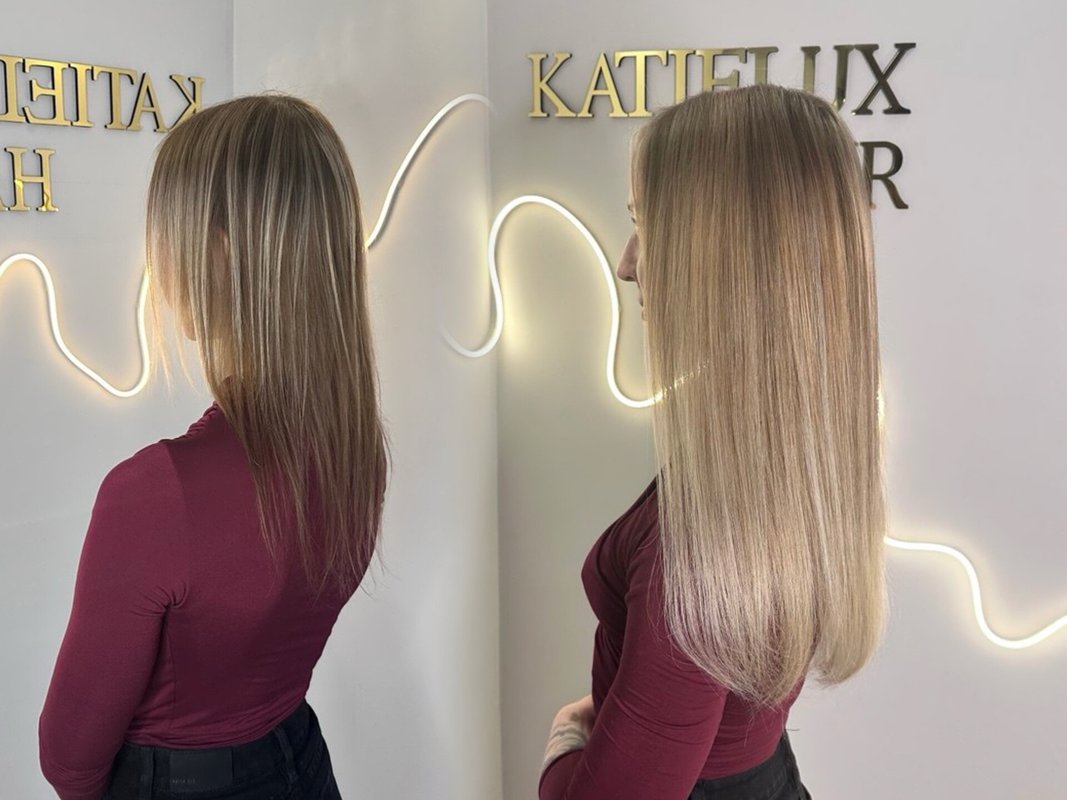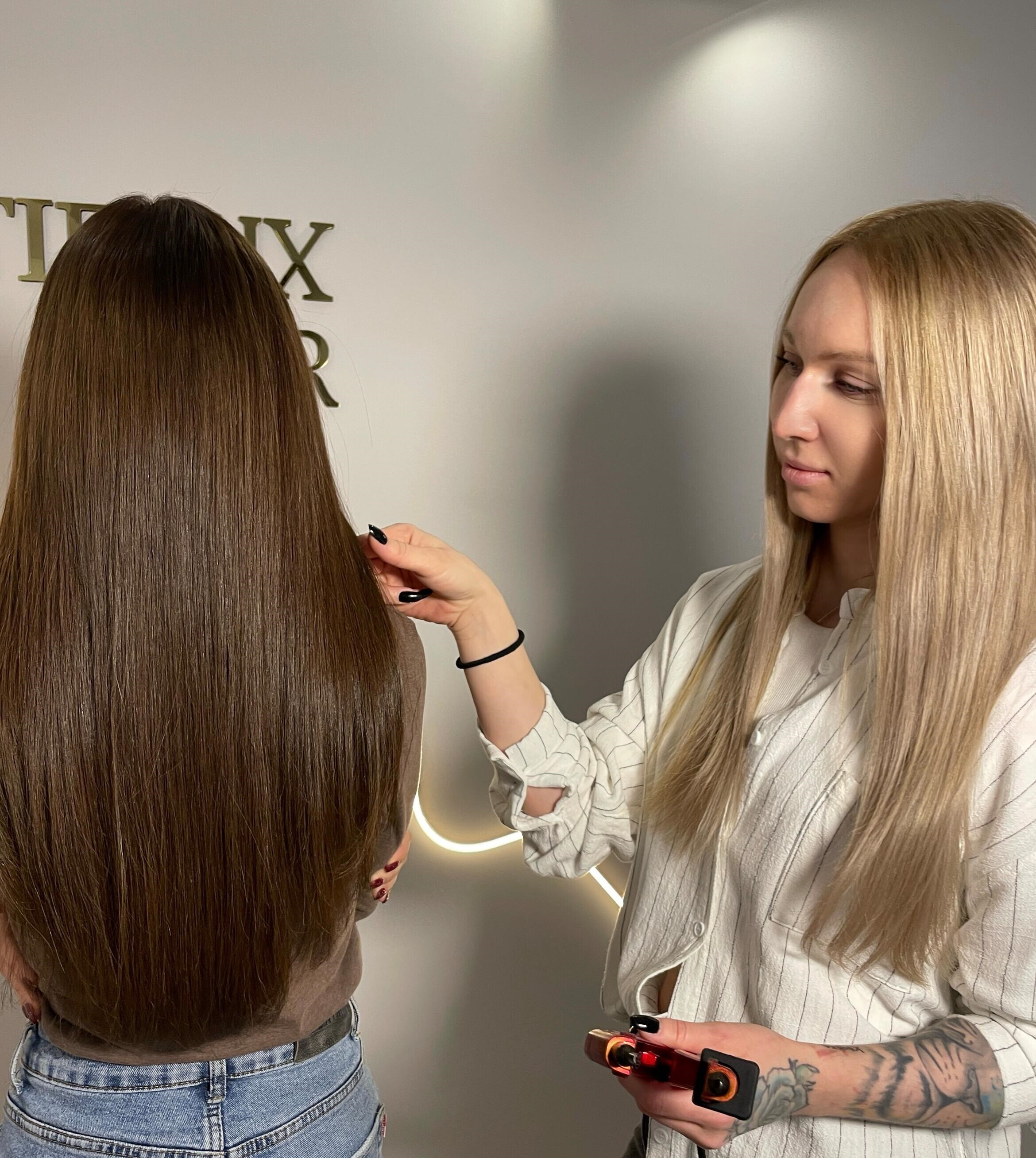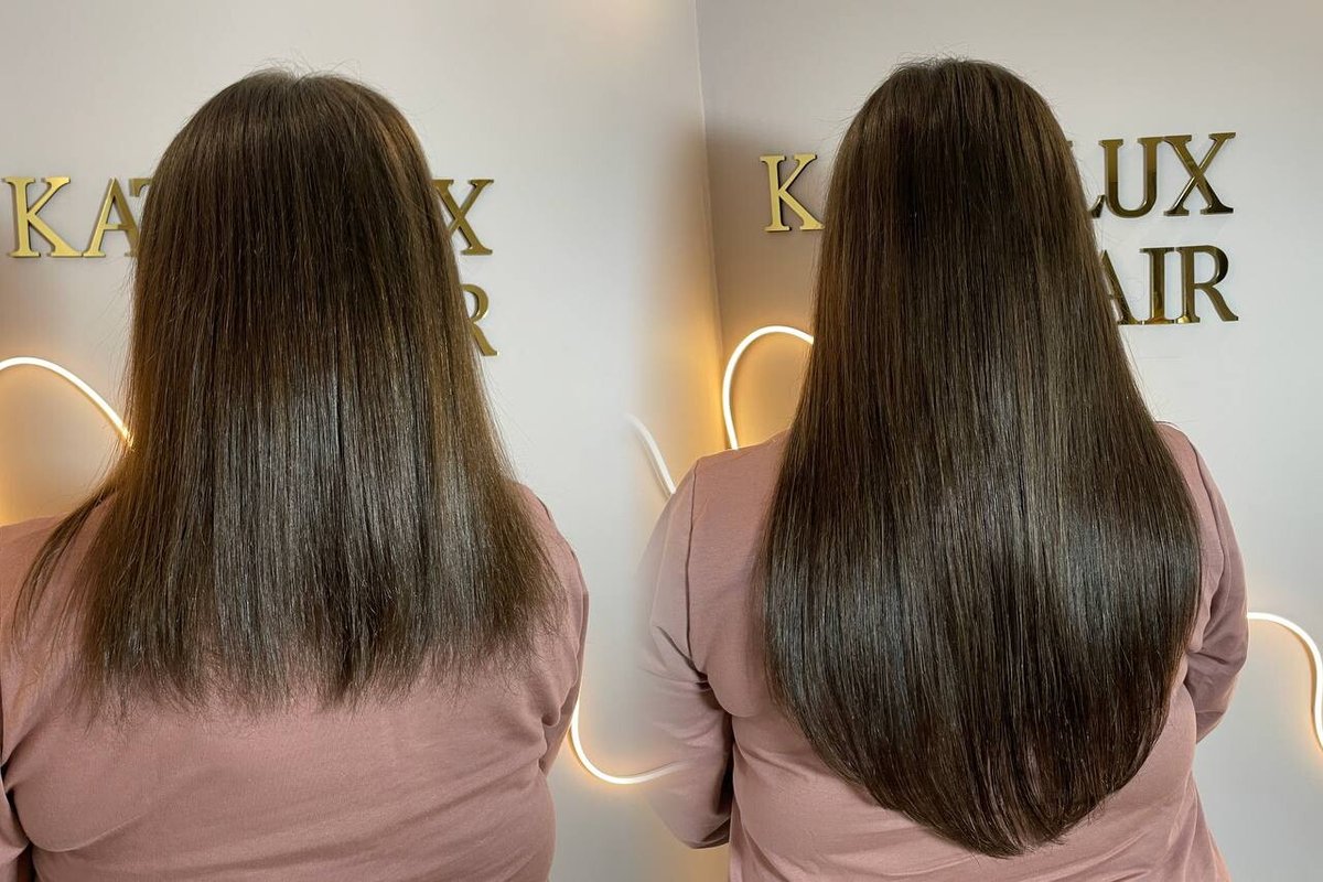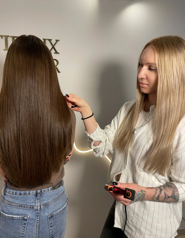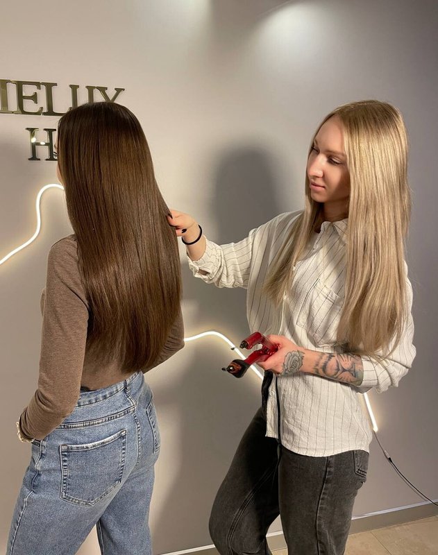 Недавно делала наращивание волос и осталась очень довольна результатом - волосы выглядят потрясающе! Очень понравилась сама студия и мастер Катюша: она невероятно милая и мастер своего дела, с ней было легко и приятно общаться. Катюша грамотно подобрала пряди, учла все мои пожелания и бережно отнеслась к работе. После процедуры я получила распечатанные советы по уходу за волосами и даже небольшой пакетик с маской в подарок. В эту студию пришла по рекомендации знакомых.