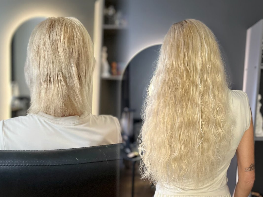 Понравилась мастер Елена- аккуратная и быстрая, работа была выполнена отлично. Капсульное наращивание волос на 60 см хорошо держится, а отношение мастера было максимально приветливым. Мне предложили чай или кофе, спросили, удобно ли сидеть, не тянут ли капсулы.