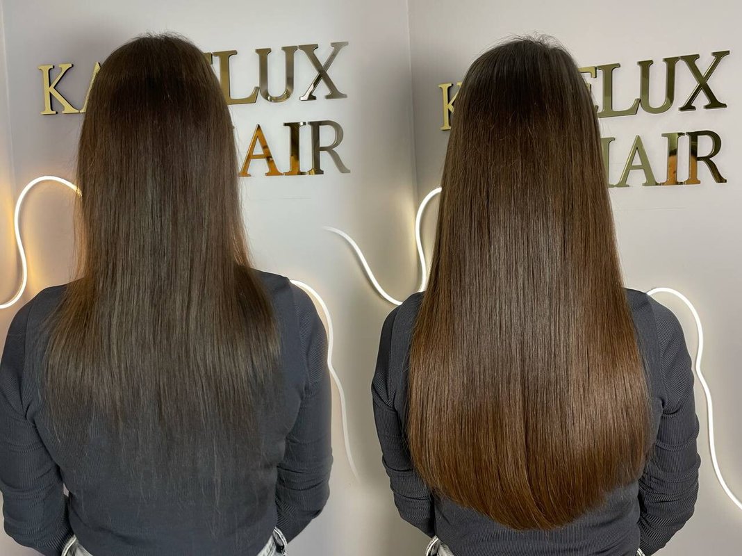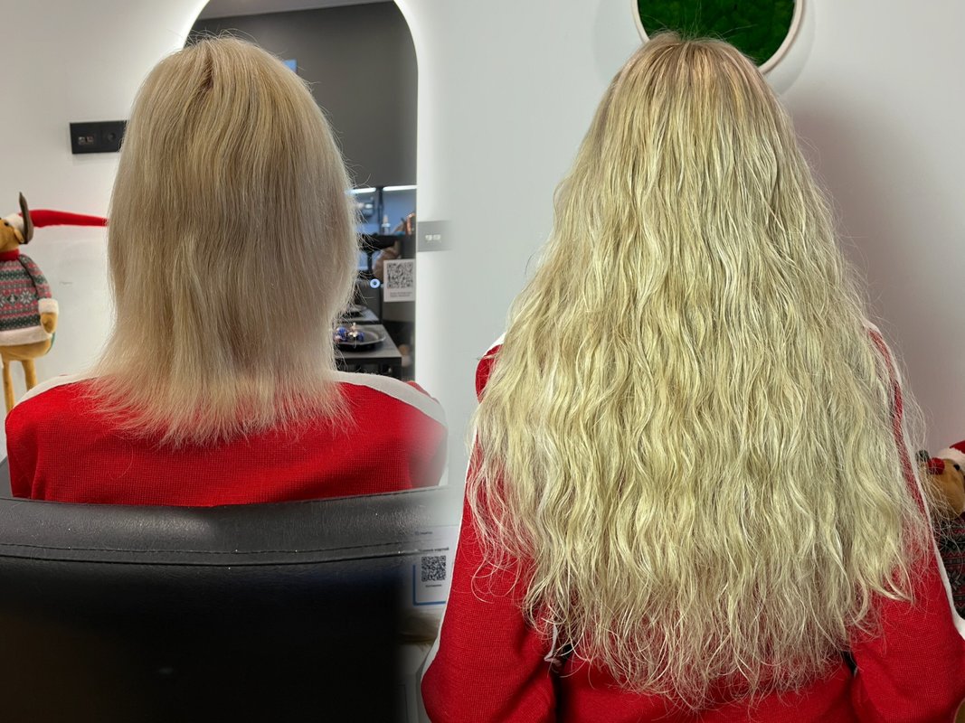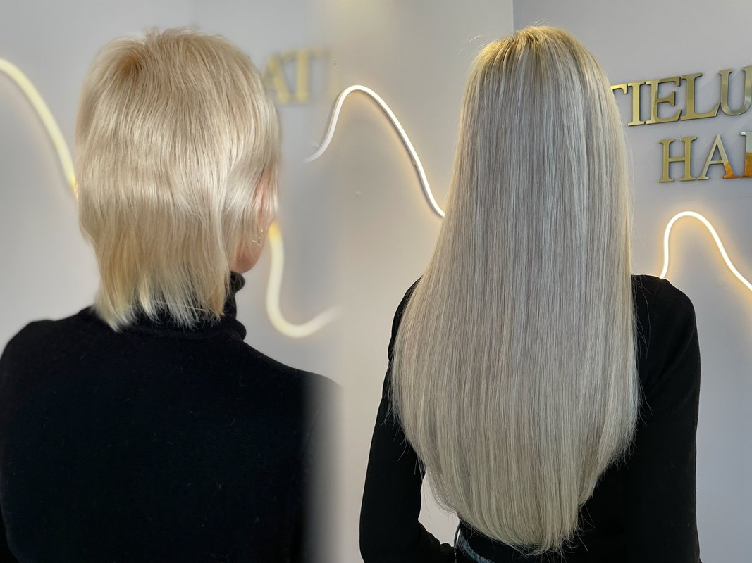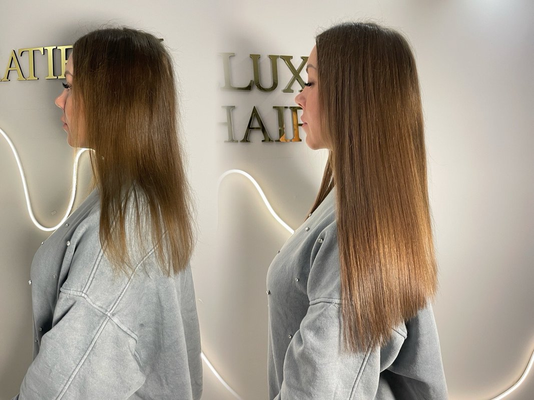 Выполнение работы оказалось качественным, капсулы для наращивания волос получились очень маленькими и аккуратными, практически не видны. Сам процесс наращивания занял около 3-х часов, что вполне комфортно. В студии меня встретили дружелюбно, предложили чай и кофе, что было очень приятно и выдали тапочки для удобства.