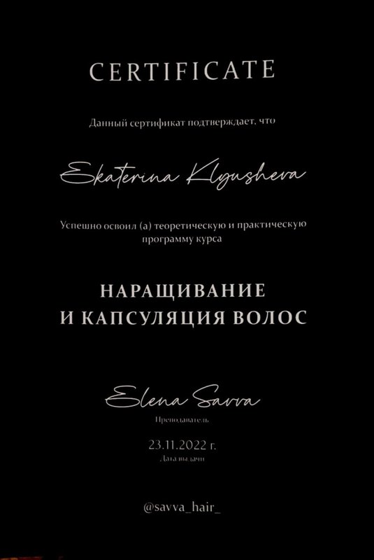 Я давно хожу в этот салон и мне там нравится всё, особенно мастер Екатерина. Она профессиональна и очень хорошо делает свою работу. Мне важно, чтобы волосы не выпадали, и Екатерина всегда учитывает мои желания, делая наращивание именно так, как мне хочется, а именно, длинные и кудрявые волосы. Отношение мастера самое лучшее, она замечательный человек. Я могу рекомендовать Екатерину за её профессионализм и отличный подход к работе.