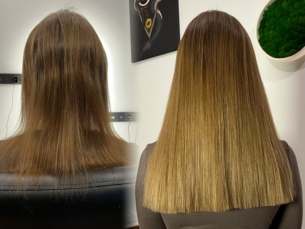 Коррекцию нарощенных волос сделали аккуратно и чётко, волосы держатся отлично. Для цвета смешивали тёмные и светлые пряди, процесс занял примерно пять часов. После работы дали подробные рекомендации по уходу, посоветовали специальные шампуни и кондиционеры без сульфатов и правильное расчесывание. Мастер Елена была приятной и вежливой, обратилась в студию после того, как увидела рекламу на сайте в интернете.